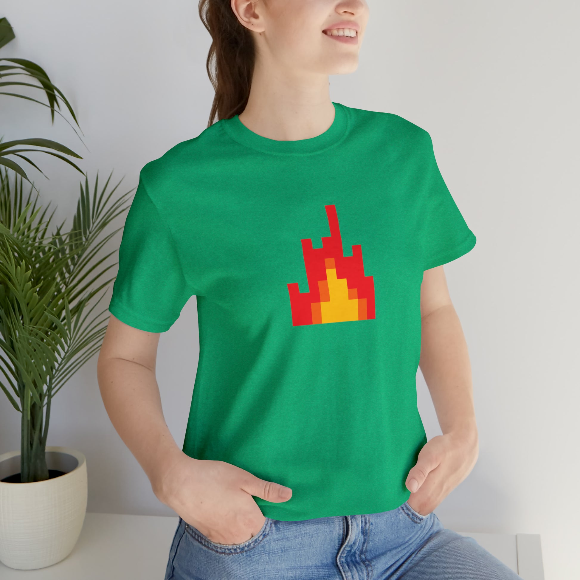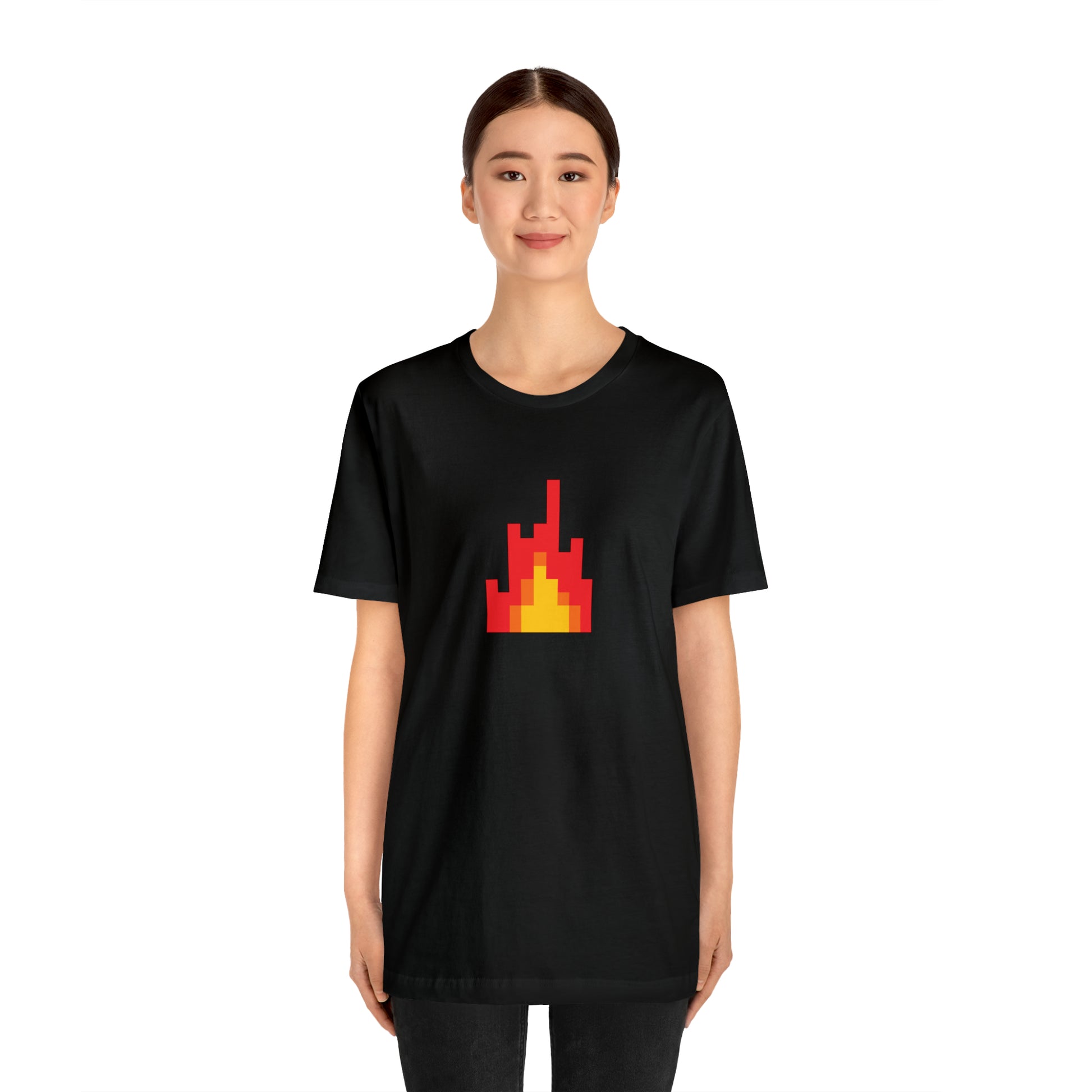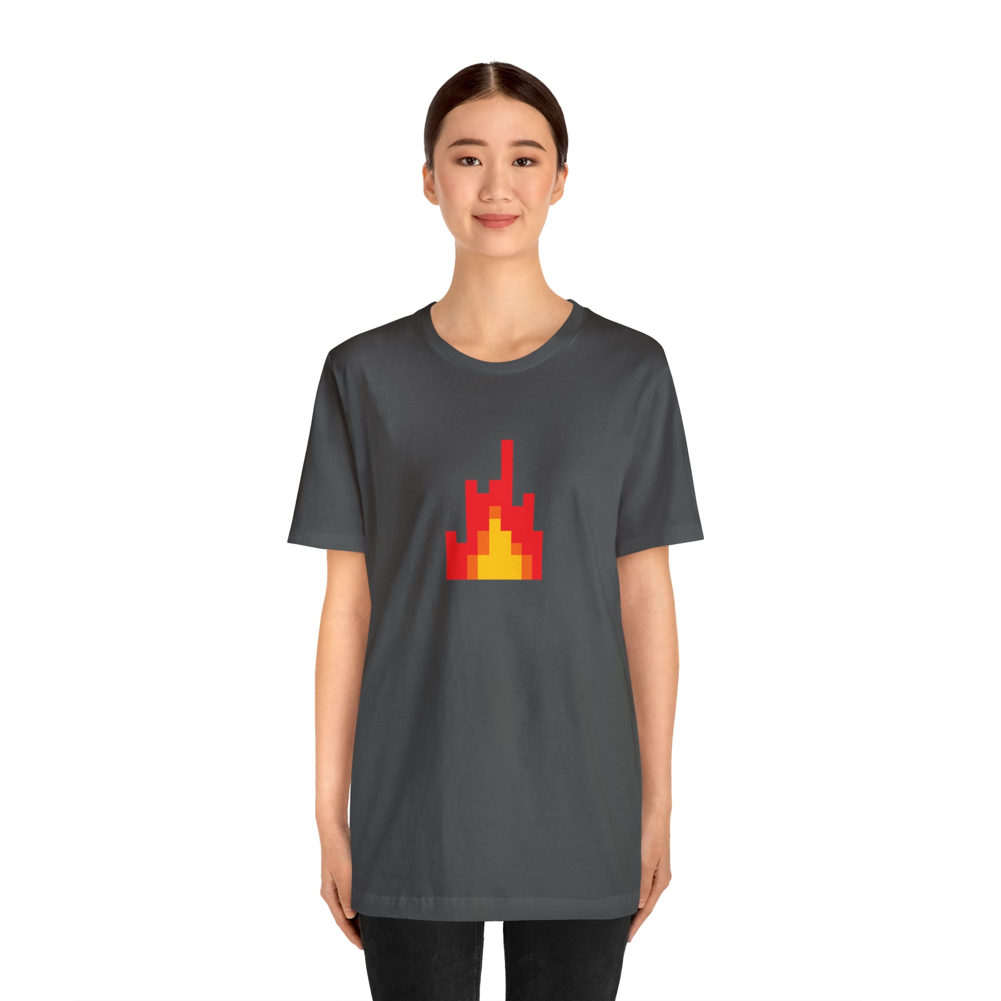 In summary, the "8-bit Fire Graphic Symbol" T-shirt isn't just clothing. It's a unique blend of fashion, comfort, and nostalgia, offering a stylish tribute to the golden era of gaming. Whether you're a gaming enthusiast, a fan of the 8-bit era, or a lover of unique graphic tees, this shirt brings an unparalleled style to your wardrobe and a nod to the pixelated past of gaming. 🎮🔥👕