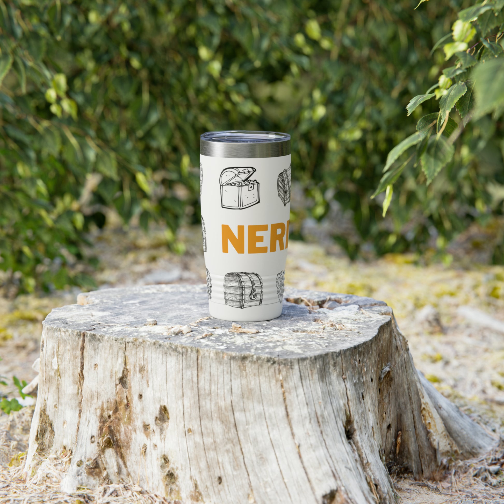 Nerd Treasure Chest - Black and White - With Logo - Ringneck Tumbler, 20oz