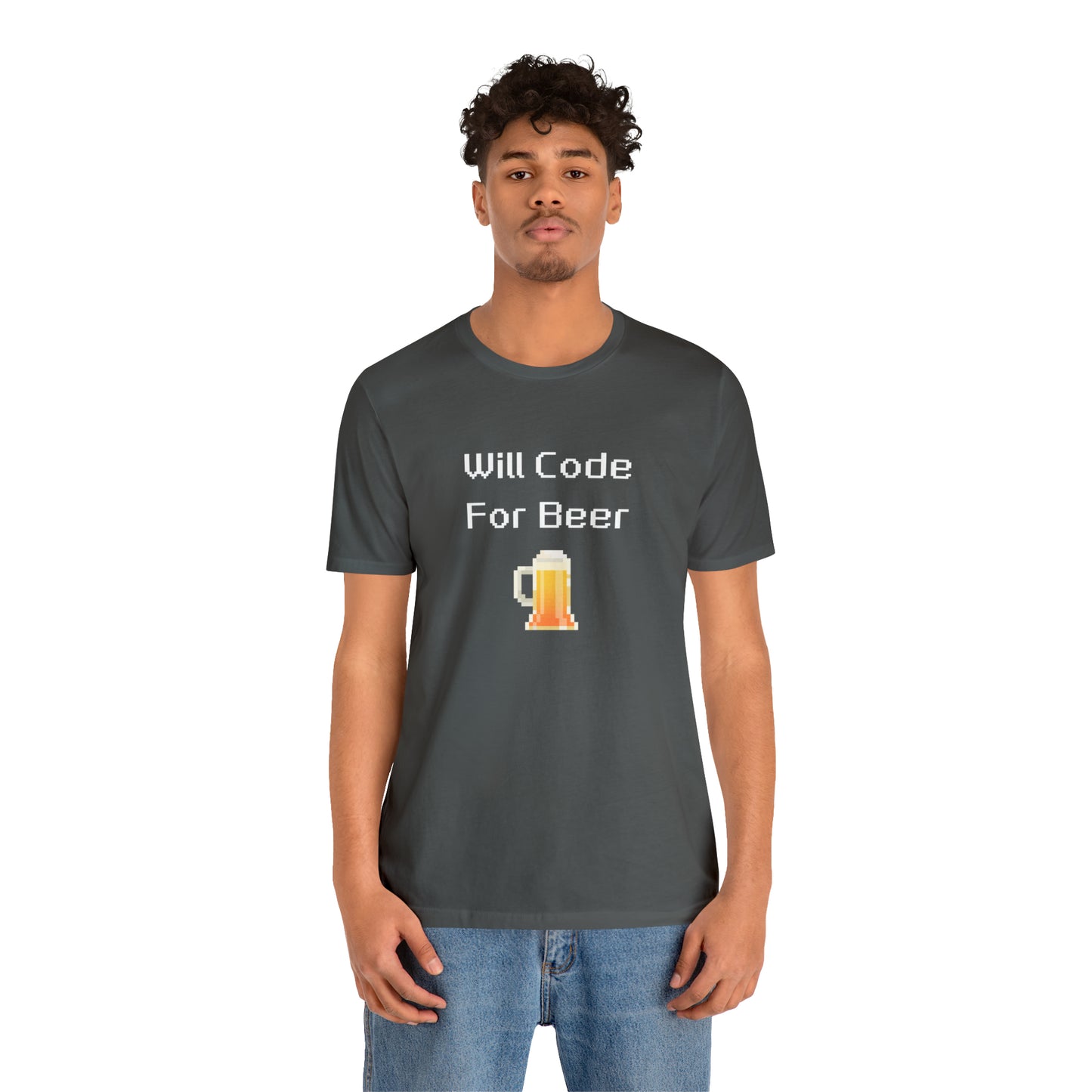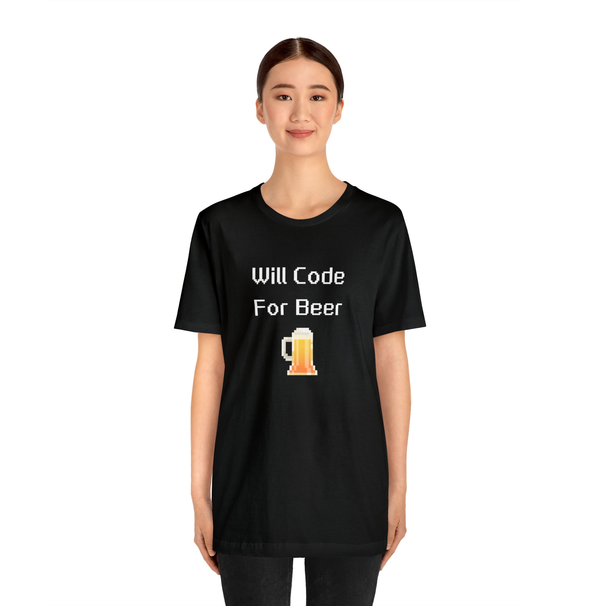 Will Code For Beer T-shirt With 8-bit Beer Graphic - variation 1